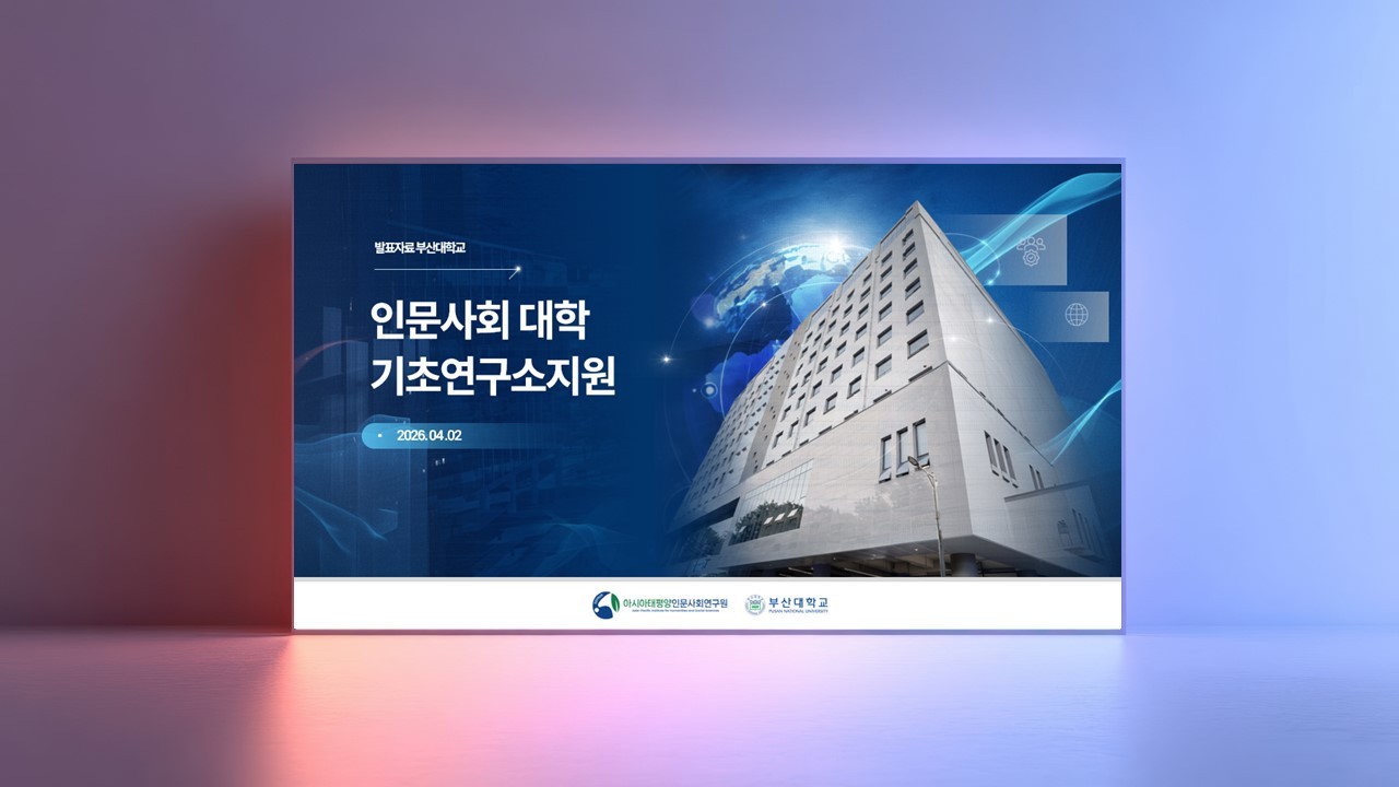대학 건축 이미지와 글로벌 그래픽 요소를 결합해 연구 지원 사업의 신뢰성과 확장성을 표현했습니다.
